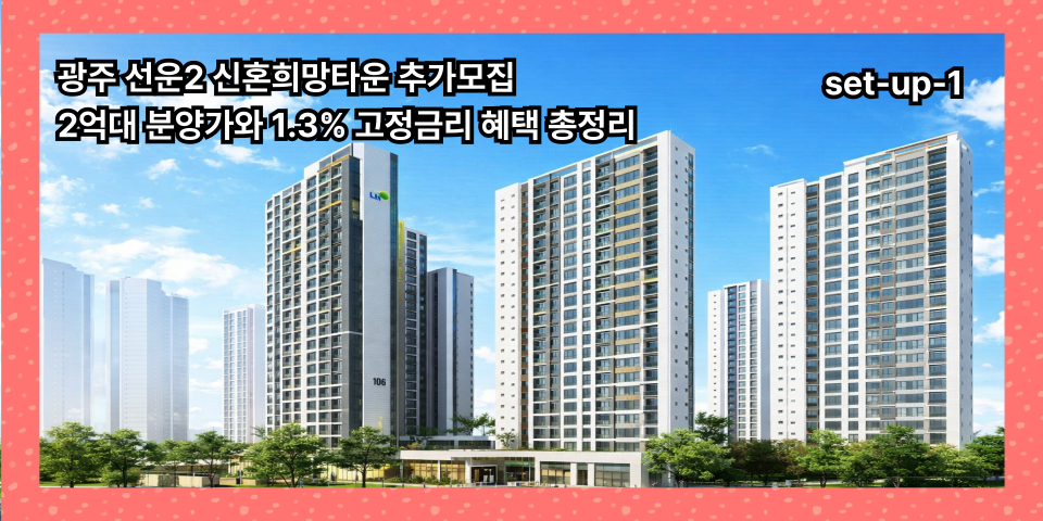 광주광역시 아파트 분양가가 가파르게 상승하면서 신혼부부들의 주거 마련 문턱이 높아지고 있습니다. 이러한 시기에 대안으로 주목받는 '광주선운2 신혼희망타운(A-1, A-3블록)'의 선착순 동호지정 추가 모집 정보를 정리해 드립니다. 본 정보는 2026년 2월 2일 공고문을 기준으로 작성되었습니다.